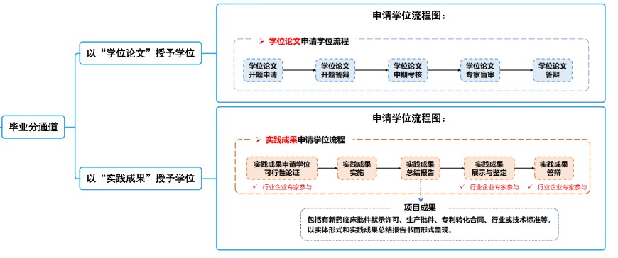 成立生物与医药专业学位评定分委员会,实行毕业成果双通道,一方面以“学位论文”授予学位,同时鼓励员工以新药开发成果、临床药学实践成果、行业技术标准等创新实践成果申请毕业。创新项目团队答辩机制,邀请行业专家参与评审,突出专业学位的实践创新能力。